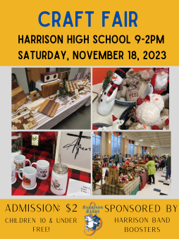 Harrison Band Boosters Craft Show. Over 100 vendors with homemade products. Admission $2; Children under 10 free
