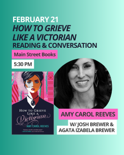 Join us for a reading and conversation about How to Grieve Like a Victorian with author Amy Carol Reeves, in conversation with Agata Izabela Brewer and Josh Brewer. “The story offers multiple points of appeal: a strong heroine who learns to live again after loss, a family mystery, a roguish cad who gets his comeuppance online and IRL, and the blossoming of more than one lovely romance, set in both the past and present. Reeves makes an excellent adult debut with this charming and often humorous exploration of love, grief, and moving on.”—Library Journal **STARRED REVIEW**